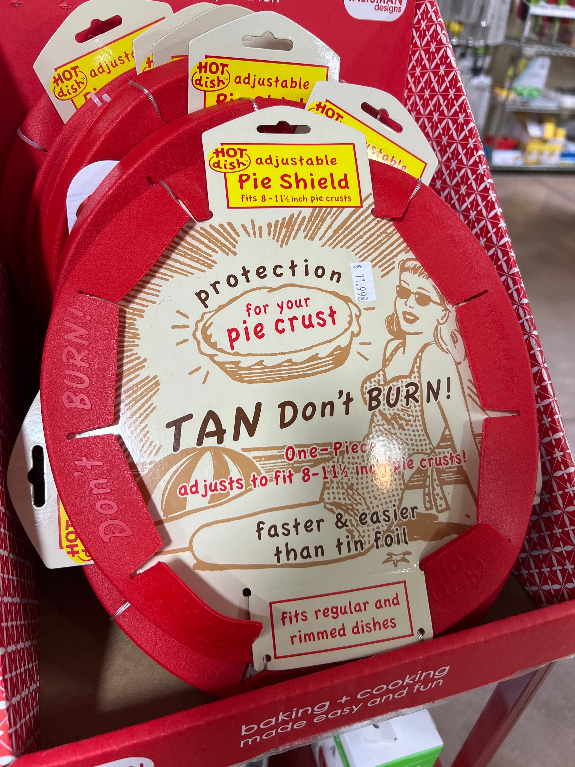 This pie shield will not stick to crusts and can lock into place if desired. Easy to store and faster/more economical than tin foil.