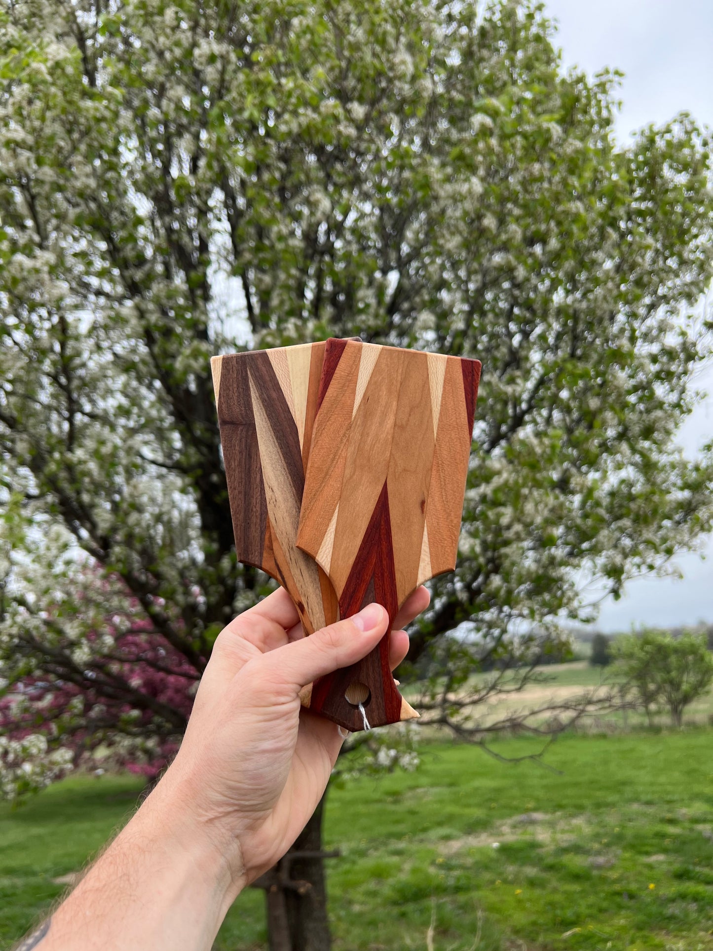 Small in size, big in charm. This 5-inch Amish-made cheese board is the perfect accent piece for your kitchen or dining table. Handcrafted in Southern Iowa by a local Amish family, each board is cut from premium hardwoods—such as walnut, cherry, maple, or oak—and finished smooth to highlight the natural beauty of the wood.