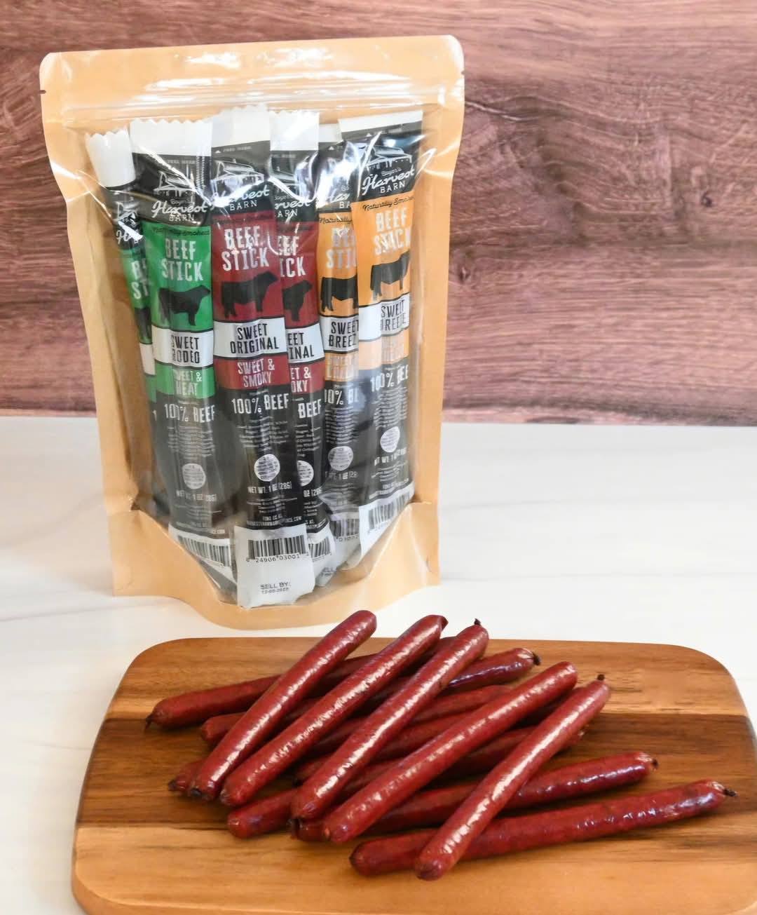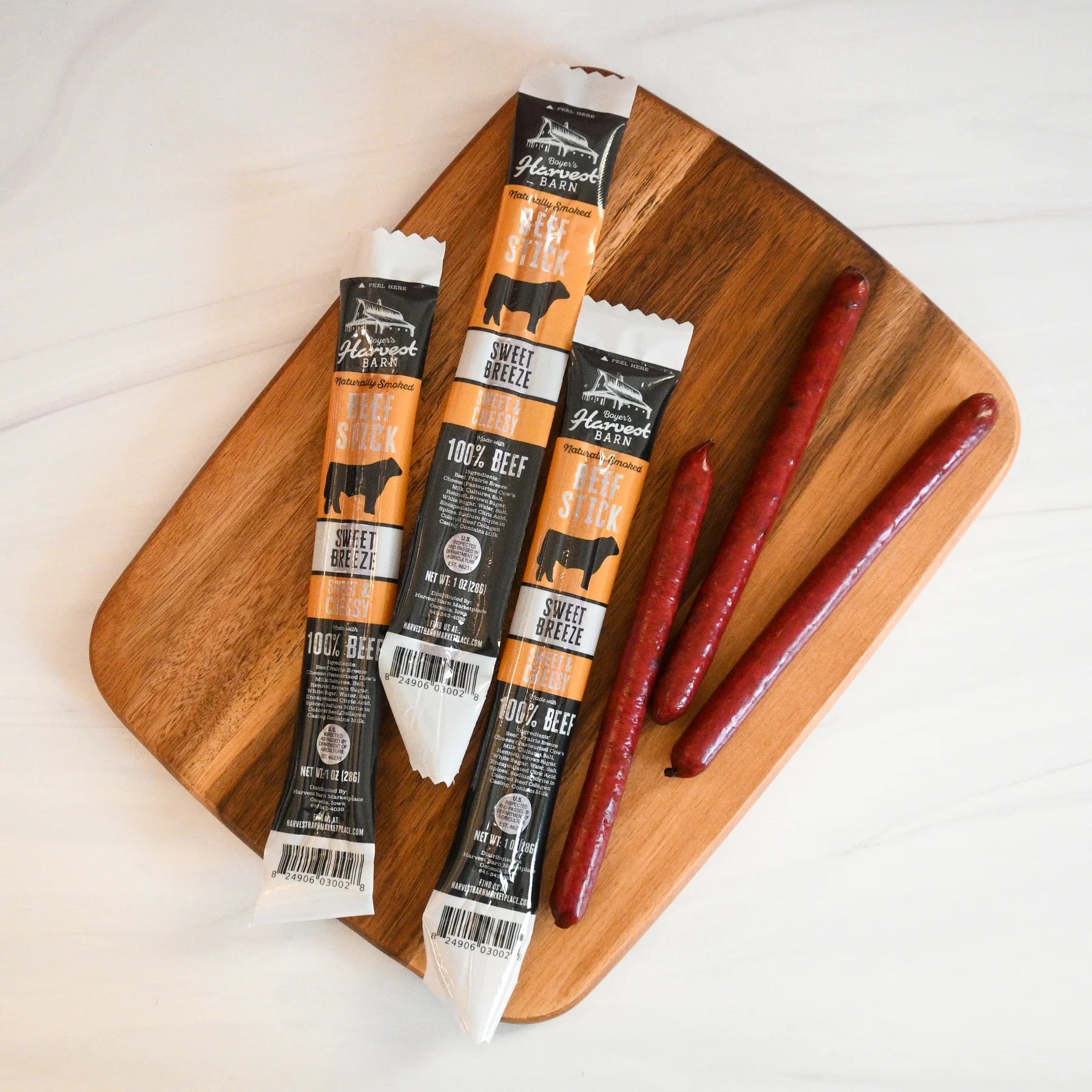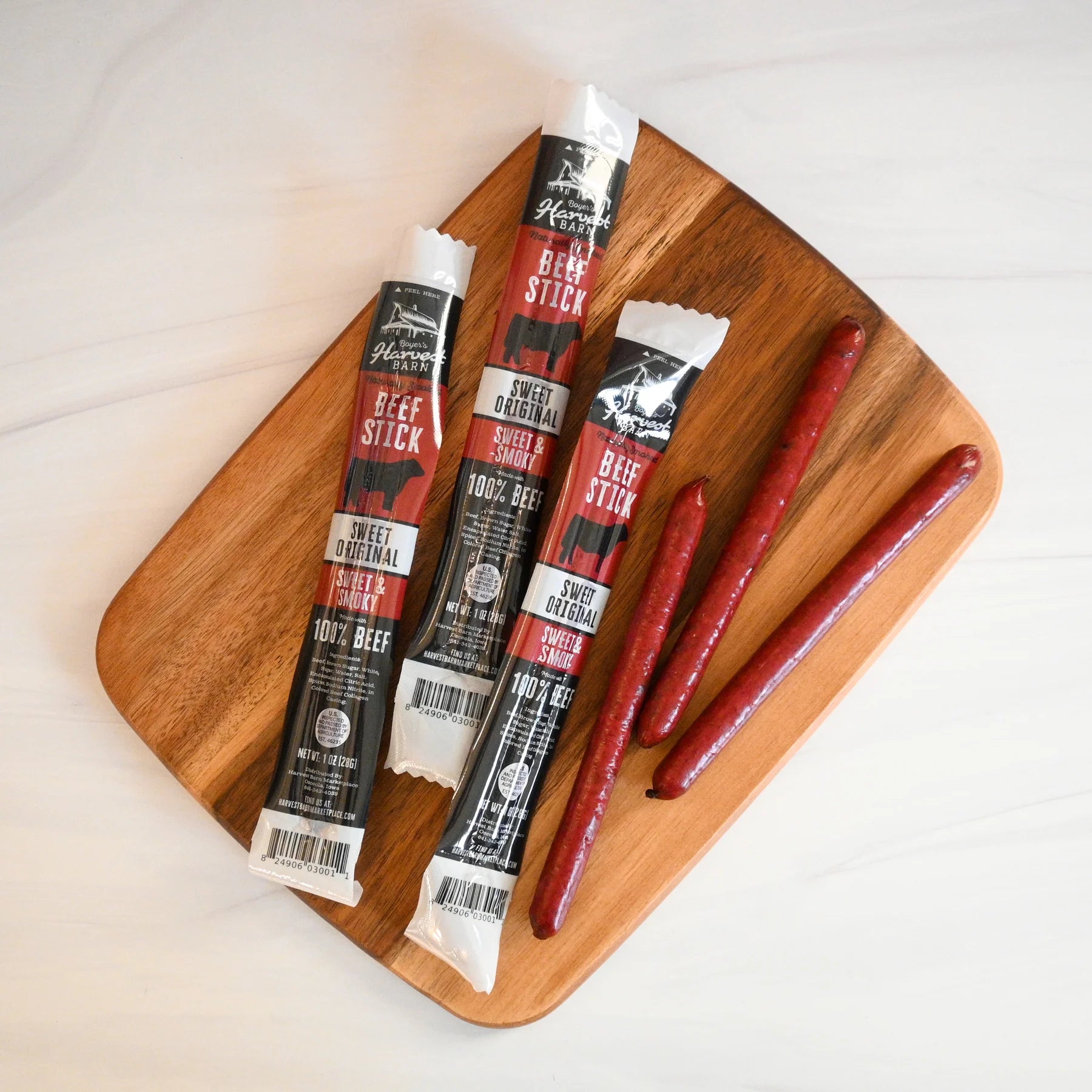 Experience the robust flavors of our Harvest Barn Beef Sticks – a collection of signature beef snacks available in three irresistible varieties.