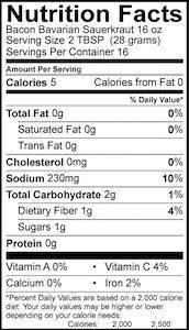 Ingredients: Sauerkraut (cabbage, water & salt), water, vinegar, salt & spice